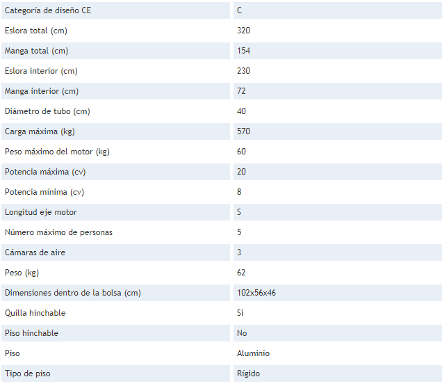 O barco inflável Mercury Adventure 320 Enduro é o mais longo da série Adventure Enduro. Sua linha de água relativamente longa permite um curso estável durante suas atividades de reboque. Como o resto dos barcos infláveis Mercury da série Adventure Enduro, seu piso é fácil de montar e não requer manutenção específica.
