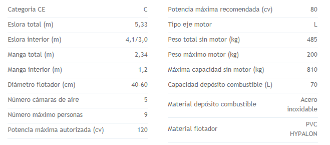 O barco semi-rígido Valiant 550 Classic oferece um alto nível de conforto e armazenamento para seu tamanho. As tampas foram otimizadas para facilitar o movimento a bordo: o novo console tem um design mais elegante e está equipado com uma instrumentação completa, o corrimão é de aço inoxidável, pára-brisa, banco da frente. Relaxar e tomar banhos de sol nunca foi tão fácil quanto o tamanho do barco semi-rígido Valiant 550 Classic: um terraço espaçoso com esteiras que podem ser estendidas com uma extensão traseira, um confortável encosto conversível em solário, muito espaço de armazenamento para seus itens pessoais e utensílios na grande estiva e baús de popa.