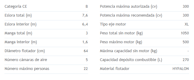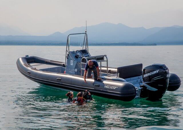 O barco semi-rígido Valiant 760 Sport é um barco rápido, sólido e seguro graças ao seu casco em forma de V. O Valiant 760 Sport foi concebido para oferecer a mais alta segurança a bordo. Possui um tanque de combustível de 300L no piso antiderrapante e de fácil acesso. O flutuador é equipado com uma plataforma de fibra de vidro integrada que aumenta a estabilidade do barco para o melhor desempenho possível e total segurança. Tem espaço para estiva na proa separada da âncora e na popa através de um baú integrado no piso.